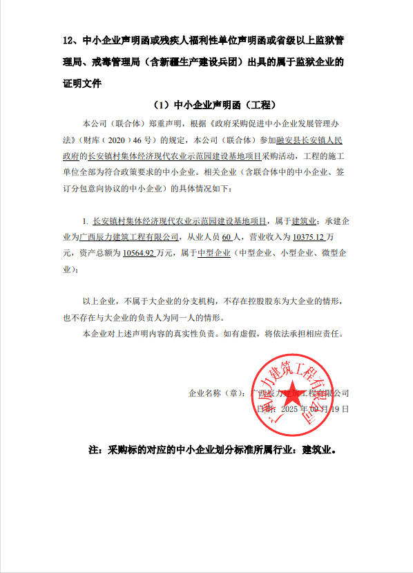 一、项目编号:LZZC2025-C2-240079-GXGH 二、项目名称:长安镇村集体经济现代农业示范园建设基地项目 三、中标(成交)信息 1.中标结果: | 序号 | 中标(成交)金额(元) | 中标供应商名称 | 中标供应商地址 | | 1 | 报价:3310099.72(元) | 广西辰力建筑工程有限公司 | 广西壮族自治区柳州市融安县政务大楼五楼 |