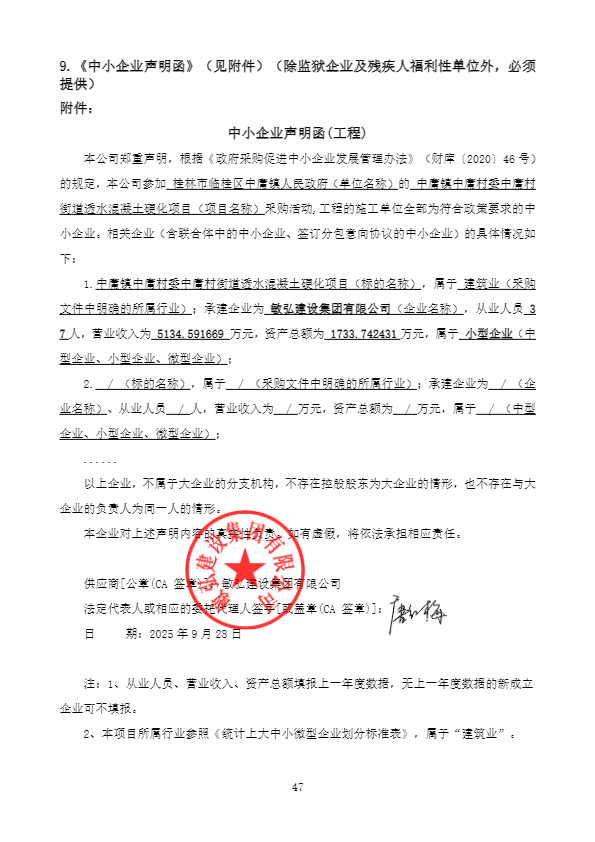 一、项目编号:GLZC2025-C2-120066-ZCJS 二、项目名称:中庸镇中庸村委中庸村街道透水混凝土硬化项目 三、中标(成交)信息 1.中标结果: | 序号 | 中标(成交)金额(元) | 中标供应商名称 | 中标供应商地址 | | 1 | 报价:971700.54(元) | 敏弘建设集团有限公司 | 恭城县恭城镇城中西路惠景城中城1#-3 |