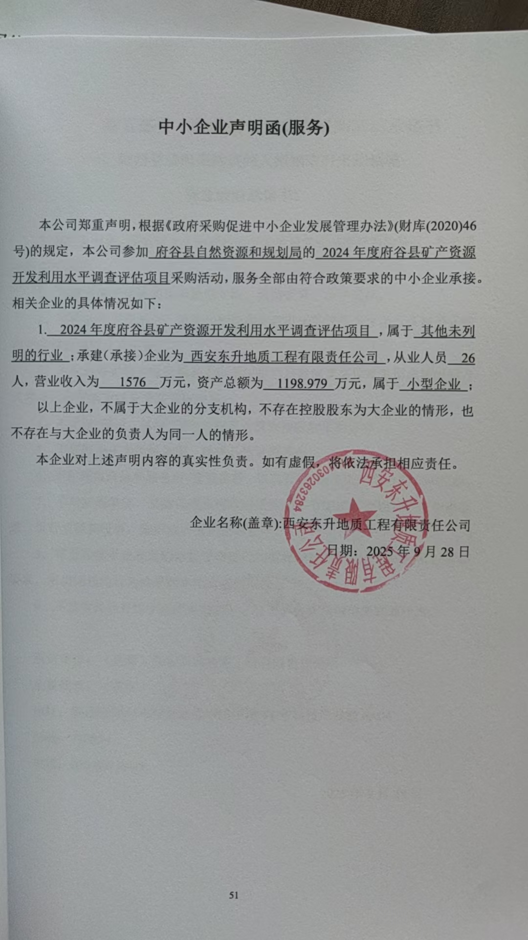 四、主要标的信息合同包1(2024年度府谷县矿产资源开发利用水平调查评估项目): 服务类(西安东升地质工程有限责任公司)