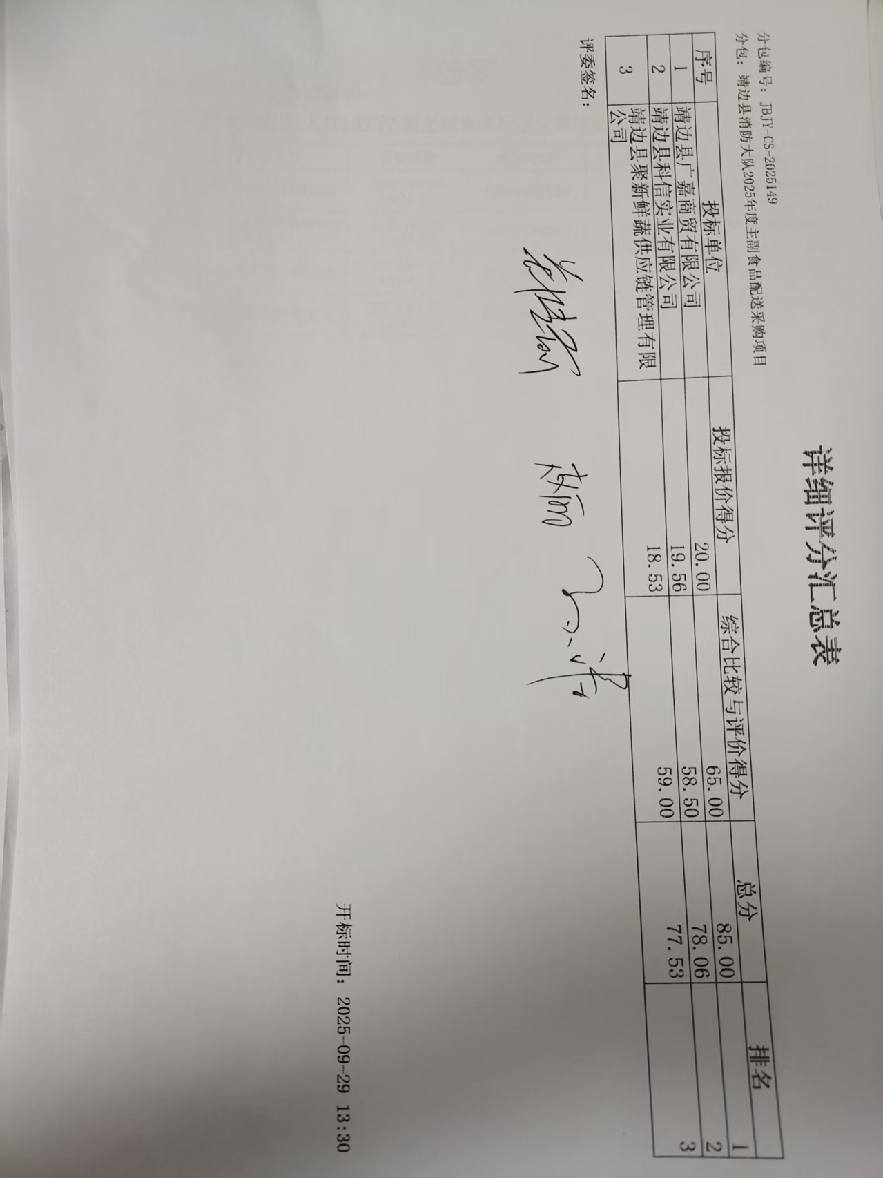 一、项目编号:JBJY-CS-2025149二、项目名称:靖边县消防大队2025年度主副食品配送采购项目三、采购结果采购包1: