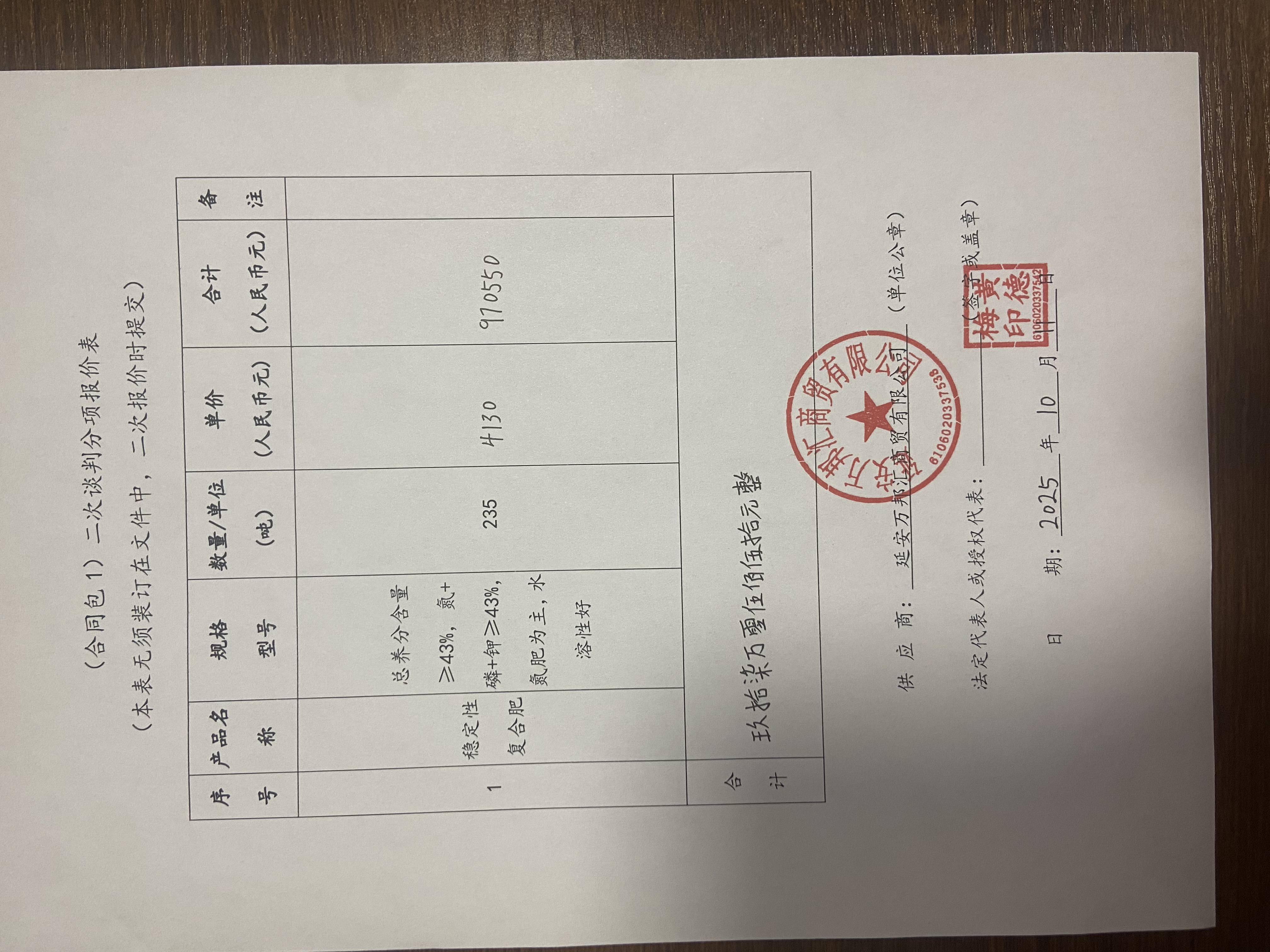 一、项目编号:RC2025YA-ZB-008 二、项目名称:2025年科学施肥增效 三、采购结果 采购包1: 供应商名称 | 供应商地址 | 中标(成交)金额 | 评审价格 | 延安万邦汇商贸有限公司 | 陕西省延安市宝塔区新城鼎盛豪庭B区2楼213-F | 970,550.00元 | 970,550.00元 | 采购包2: 供应商名称 | 供应商地址 | 中标(成交)金额 | 评审价格 | 延安广创工贸有限公司 | 陕西省延安市宝塔区黄蒿洼路14号2楼 | 186,000.00元 | 186,000.00元 | 四、主要标的信息 合同包1(2025年科学施肥增效): 货物类(延安万邦汇商贸有限公司) 品目号 | 品目名称 | 采购标的 | 品牌 | 规格型号 | 数量(单位) | 单价(元) | 总价(元) | 1 | 化学肥料 | 987000 | 华鑫 | 总养分含量≥43%,氮+磷+钾≥43%,氮肥为主,水溶性好 | 235.00(吨) | 4,130.00 | 970,550.00 | 合同包2(2025年科学施肥增效): 货物类(延安广创工贸有限公司) 品目号 | 品目名称 | 采购标的 | 品牌 | 规格型号 | 数量(单位) | 单价(元) | 总价(元) | 2 | 有机肥料及微生物肥料 | 195000 | 谷霖 | 有机质≥130g/L,氮+磷+钾≥75g/L,含有活性菌 | 1,500.00(公斤) | 124.00 | 186,000.00 | 五、评审专家(单一来源采购人员)名单: 六、代理服务收费标准及金额: 代理服务收费标准及金额 | 按协议价计取,由中标人在领取中标通知书前一次性全额付清。 | 合同包号 | 合同包名称 | 代理服务费金额(万元) | 收取对象 | 1 | 2025年科学施肥增效 | 1.57 | 中标(成交)供应商 | 2 | 2025年科学施肥增效 | 0.5 | 中标(成交)供应商 | 七、公告期限 自本公告发布之日起1个工作日。 八、其他补充事宜 九、凡对本次公告内容提出询问,请按以下方式联系。 1.采购人信息 名称:延安市宝塔区农业环境保护站 地址:枣园路志丹大厦7楼 联系方式:15609115951 2.采购代理机构信息 名称:锐驰项目管理有限公司 地址:延安市宝塔区红化B区惠泽路33号 联系方式:13468868629 3.项目联系方式 项目联系人:马集益 电话:13468868629 锐驰项目管理有限公司 2025年10月14日 |