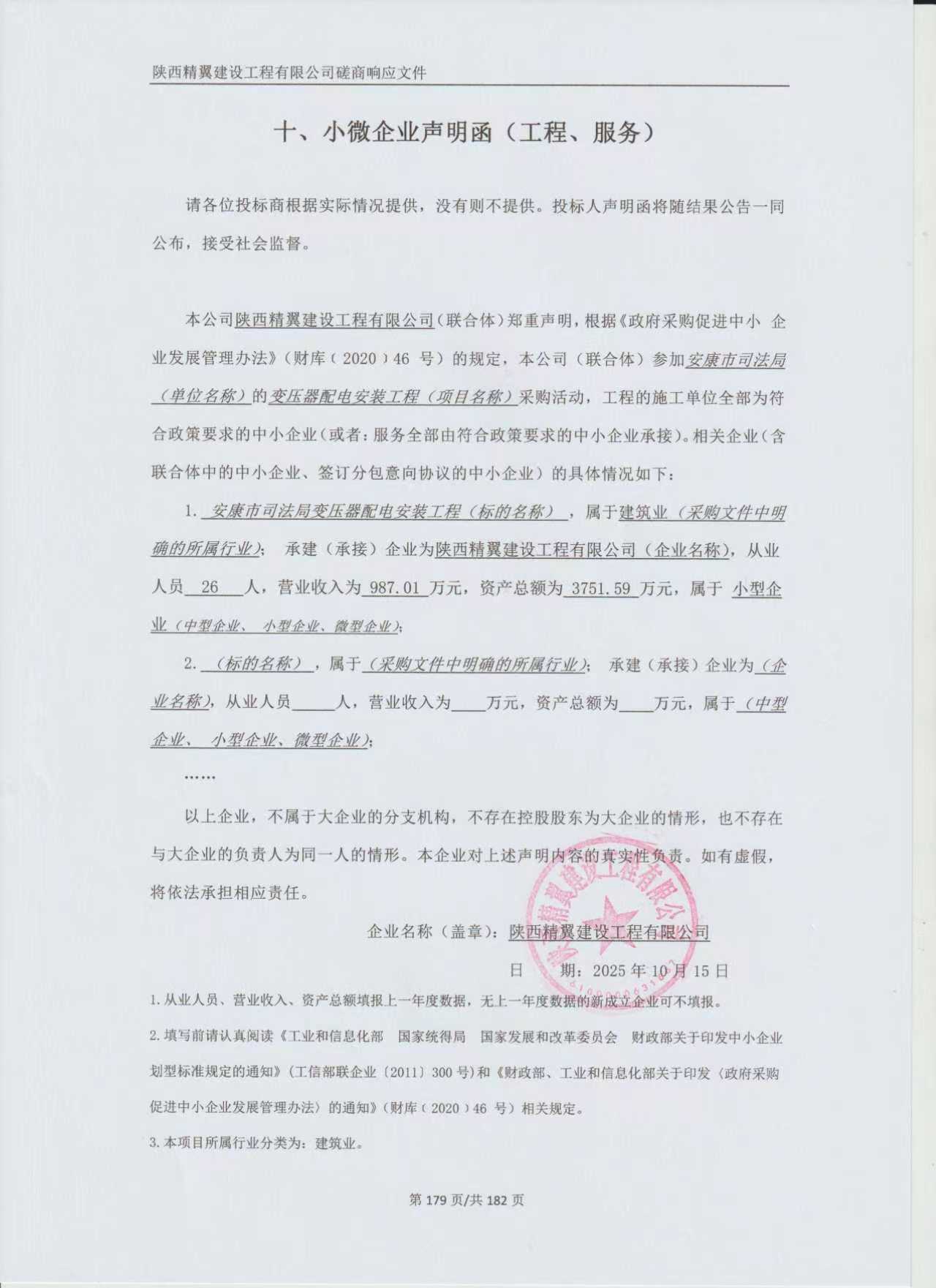 一、项目编号:SXHYFSZC-2025-10-1 二、项目名称:变压器配电安装工程 三、采购结果 采购包1: | 供应商名称 | 供应商地址 | 中标(成交)金额 | 评审总得分 | | 陕西精翼建设工程有限公司 | 陕西省安康市汉滨区 | 187,600.00元 | 86.33 | 四、主要标的信息 合同包1(变压器配电安装工程): 工程类(陕西精翼建设工程有限公司) | 品目号 | 品目名称 | 采购标的 | 施工范围 | 施工工期 | 项目经理 | 执业证书信息 | 金额(元) | | 1 | 其他电力系统安装 | 190000 | 详见磋商文件 | 合同签订生效之日起30个日历日完成 | 赵小娟 | 陕261212144163 | 187,600.00 | 五、评审专家(单一来源采购人员)名单: 六、代理服务收费标准及金额: | 代理服务收费标准及金额 | 参照《国家计委关于印发〈招标代理服务费管理暂行办法〉的通知》(计价格【2002】1980号)标准,结合市场价计取。 | | 合同包号 | 合同包名称 | 代理服务费金额(万元) | 收取对象 | | 1 | 变压器配电安装工程 | 0.4 | 中标(成交)供应商 | 七、公告期限 自本公告发布之日起1个工作日。 八、其他补充事宜 九、凡对本次公告内容提出询问,请按以下方式联系。 1.采购人信息 名称:安康市司法局 地址:陕西省安康市汉滨区巴山西路175号 联系方式:0915-8168963 2.采购代理机构信息 名称:陕西鸿源沣昇项目管理有限公司 地址:陕西省安康市汉滨区南井街安怡大厦1302室 联系方式:0915-3116678 3.项目联系方式 项目联系人:刘先生 电话:17709156783 陕西鸿源沣昇项目管理有限公司 2025年10月16日 |