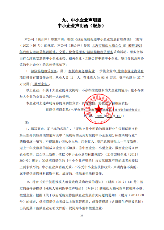 2.废标结果: 四、主要标的信息 服务类主要标的信息: 序号 | 标项名称 | 标的名称 | 服务范围 | 服务要求 | 服务时间 | 服务标准 | 1 | 采购2025年残疾人运动员集训场地、交通、伙食等服务-游泳场地租赁服务 | 采购2025年残疾人运动员集训场地、交通、伙食等服务-游泳场地租赁服务 | 详见成交标的 | 详见成交标的 | 详见成交标的 | 详见成交标的 |