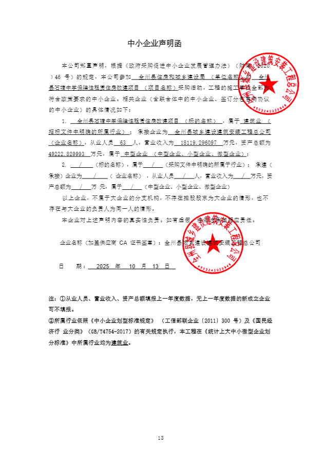 一、项目编号:GLZC2025-C2-240097-GXDY 二、项目名称:全州县石塘中学保障性租赁住房改建项目 三、中标(成交)信息 1.中标结果: 序号 | 中标(成交)金额(元) | 中标供应商名称 | 中标供应商地址 | 1 | 报价:1190037.42(元) | 全州县城乡建设建筑安装工程总公司 | 全州县全州镇民族路1号 |