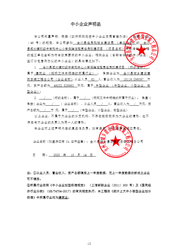一、项目编号:GLZC2025-C2-240100-GXDY 二、项目名称:全州县咸水镇初级中学和中心小学保障性租赁住房改建项目 三、中标(成交)信息 1.中标结果: 序号 | 中标(成交)金额(元) | 中标供应商名称 | 中标供应商地址 | 1 | 报价:999625.12(元) | 全州县城乡建设建筑安装工程总公司 | 全州县全州镇民族路1号 |