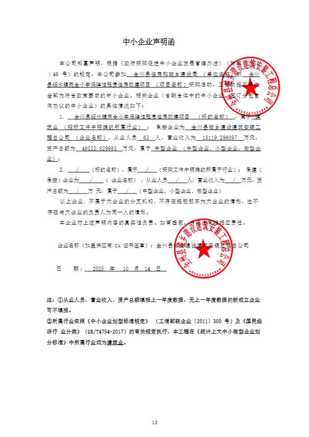 一、项目编号:GLZC2025-C2-240098-GXDY 二、项目名称:全州县绍水镇完全小学保障性租赁住房改建项目 三、中标(成交)信息 1.中标结果: 序号 | 中标(成交)金额(元) | 中标供应商名称 | 中标供应商地址 | 1 | 报价:1792470.17(元) | 全州县城乡建设建筑安装工程总公司 | 全州县全州镇民族路1号 |