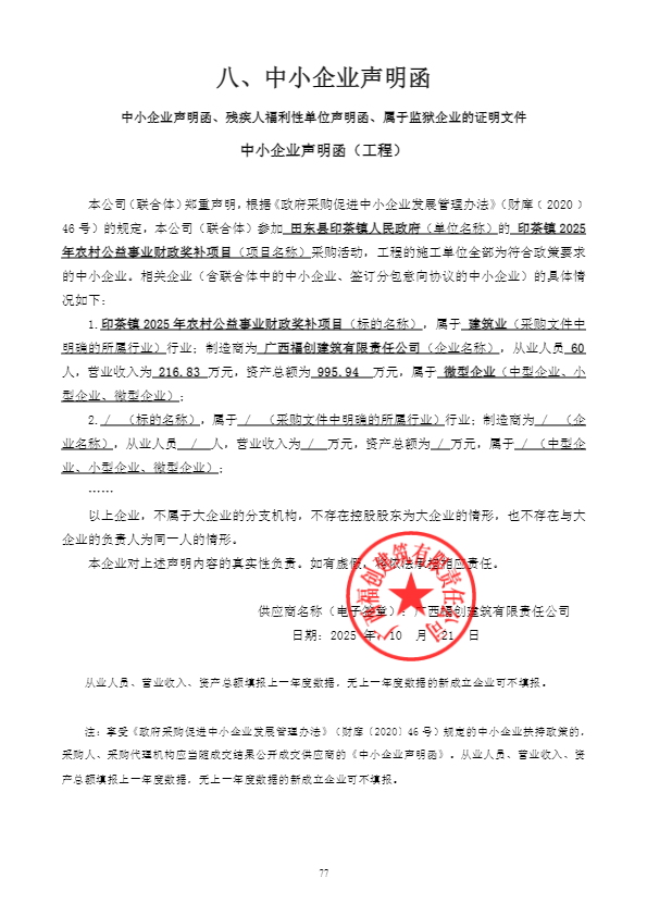 2.废标结果: 四、主要标的信息 工程类主要标的信息: 序号 | 标项名称 | 标的名称 | 施工范围 | 施工工期 | 项目经理 | 执业证书信息 | 1 | 印茶镇2025年农村公益事业财政奖补项目 | 印茶镇2025年农村公益事业财政奖补项目 | 印茶镇2025年农村公益事业财政奖补项目工程一项(具体内容以工程量清单及施工图纸为准) | 120日历天 | 李荣才 | 桂245081012623 | 五、评审专家(单一来源采购人员)名单: 林慧玲,庞亮(第1分标采购人代表),罗玉芬 六、代理服务收费标准及金额: 1.代理服务收费标准:以分标采购预算为计费额,参考原国家发展计划委员会计价格[2002]1980号《招标代理服务费管理暂行办法》收费标准(工程类)计取。 2.代理服务收费金额(元):10802 七、公告期限 自本公告发布之日起1个工作日。 八、其他补充事宜 1.本项目成交供应商综合评审得分为:90.00 2.本项目各有关当事人对成交结果有异议的,可以在成交结果公告期限届满之日起七个工作日内以书面形式向受托采购代理机构或采购人提出质疑,逾期将不再受理。 3.网上公告媒体:广西政府采购网http://zfcg.gxzf.gov.cn、中国政府采购网http://www.ccgp.gov.cn/。 九、对本次公告内容提出询问,请按以下方式联系 1.采购人信息 名 称:田东县印茶镇人民政府 地 址:印茶镇人民政府 联系方式:0776-5451011 2.采购代理机构信息 名 称:广西志通工程管理咨询有限责任公司 地 址:广西壮族自治区百色市右江区前程路长乐星城1幢5层506号 联系方式:0776-2889705 3.项目联系方式 项目联系人:黄远路 电 话:0776-2889705 附件信息: |