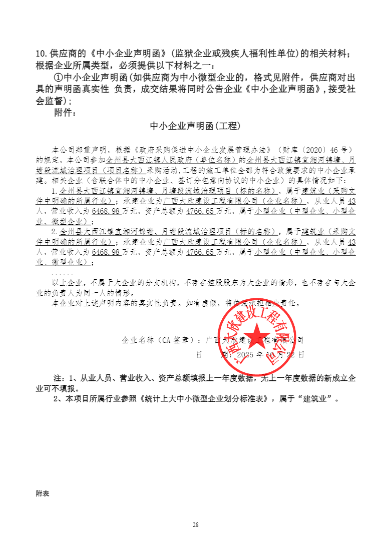 公告概要:公告信息: | 采购项目名称 | 全州县大西江镇宜湘河锦塘、月塘段流域治理项目 | 品目 | | 采购单位 | 桂林市全州县大西江镇人民政府 | 行政区域 | 广西壮族自治区 | 公告时间 | 2025年10月23日 10:49 | 评审专家(单一来源采购人员)名单 | 蒋安平,彭素英(第1分标采购人代表),闫华 | 总成交金额 | ¥199.460000 万元(人民币) | 联系人及联系方式: | 项目联系人 | 陈工,邓工 | 项目联系电话 | 0773-8287012 | 采购单位 | 桂林市全州县大西江镇人民政府 | 采购单位地址 | 全州县大西江镇人民政府 | 采购单位联系方式 | 0773-4651010 | 代理机构名称 | 广西润扬项目管理有限公司 | 代理机构地址 | 桂林市叠彩区大河乡五福村委会蔡家渡102号 | 代理机构联系方式 | 0773-8287012 |