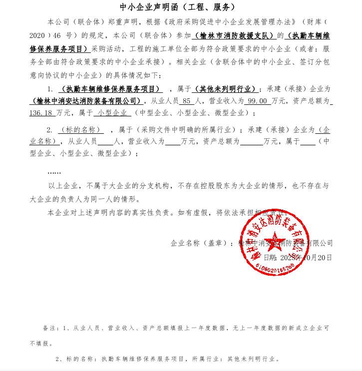 四、主要标的信息合同包1(执勤车辆维修保养服务项目): 服务类(榆林中消安达消防装备有限公司)