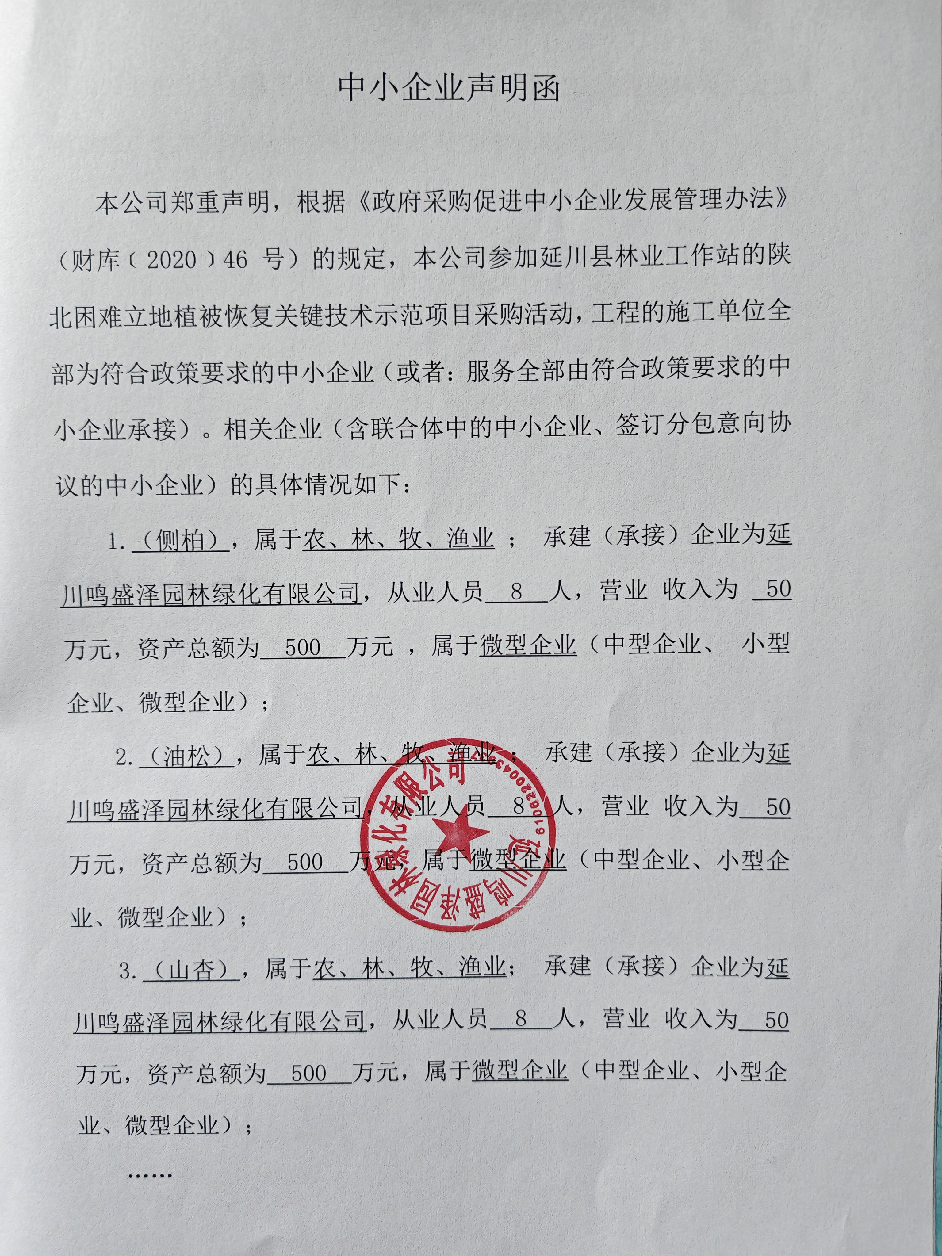 延川县林业工作站陕北困难立地植被恢复关键技术示范项目中标(成交)结果公告