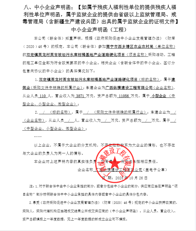 一、项目编号:NNZC2025-C2-070082-GXGN 二、项目名称:双定镇英龙村英吉坡坛污水库柑橘基地产业道路硬化项目 三、中标(成交)信息                     1.中标结果: | 序号 | 中标(成交)金额(元) | 中标供应商名称 | 中标供应商地址 |  | 1 | 报价:887655.69(元) | 广西纵横建设工程有限公司 | 钦州市民安南六巷2号 |