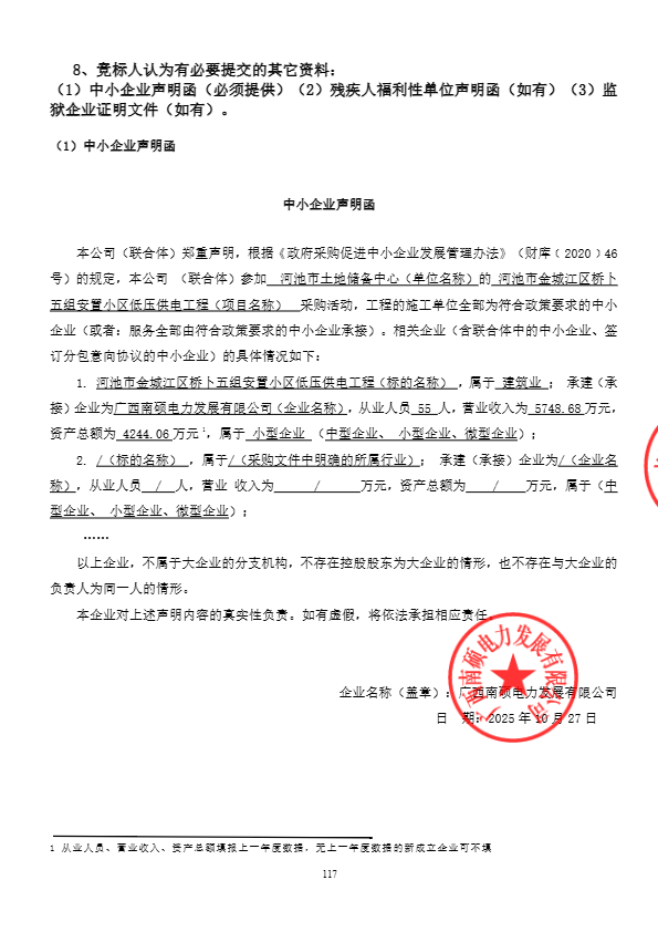 一、项目编号:HCZC2025-C2-990177-GXYL 二、项目名称:河池市金城江区桥卜五组安置小区低压供电工程 三、中标(成交)信息 1.中标结果: | 序号 | 中标(成交)金额(元) | 中标供应商名称 | 中标供应商地址 | | 1 | 报价:818170.43(元) | 广西南硕电力发展有限公司 | 南宁市高新四路3号办公楼 |