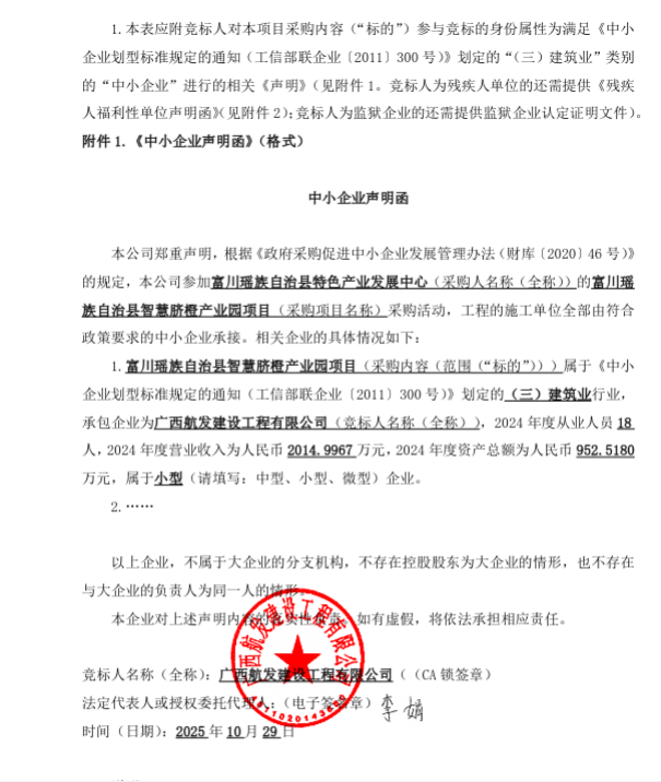 一、项目编号:HZZC2025-C2-230147-GXFX 二、项目名称:富川瑶族自治县智慧脐橙产业园项目 三、中标(成交)信息 1.中标结果: | 序号 | 中标(成交)金额(元) | 中标供应商名称 | 中标供应商地址 | | 1 | 报价:3015837.3(元) | 广西航发建设工程有限公司 | 富川瑶族自治县富阳镇城东新区(民政局附近) |
