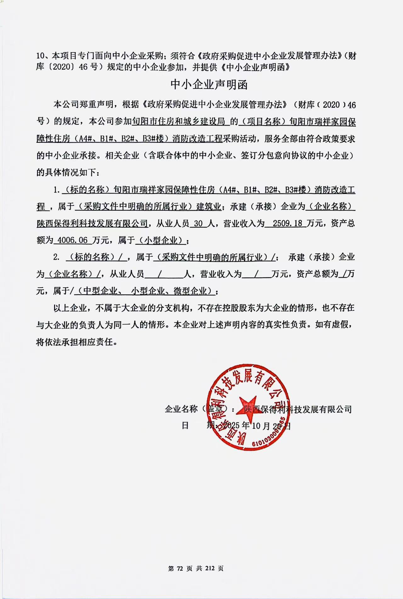 旬阳市瑞祥家园保障性住房(A4#、B1#、B2#、B3#楼)消防改造工程中标(成交)结果公告