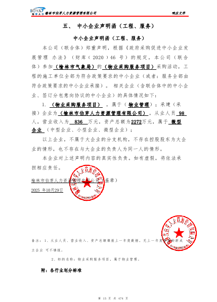 四、主要标的信息合同包1(物业采购服务项目): 服务类(榆林市伯芽人力资源管理有限公司)