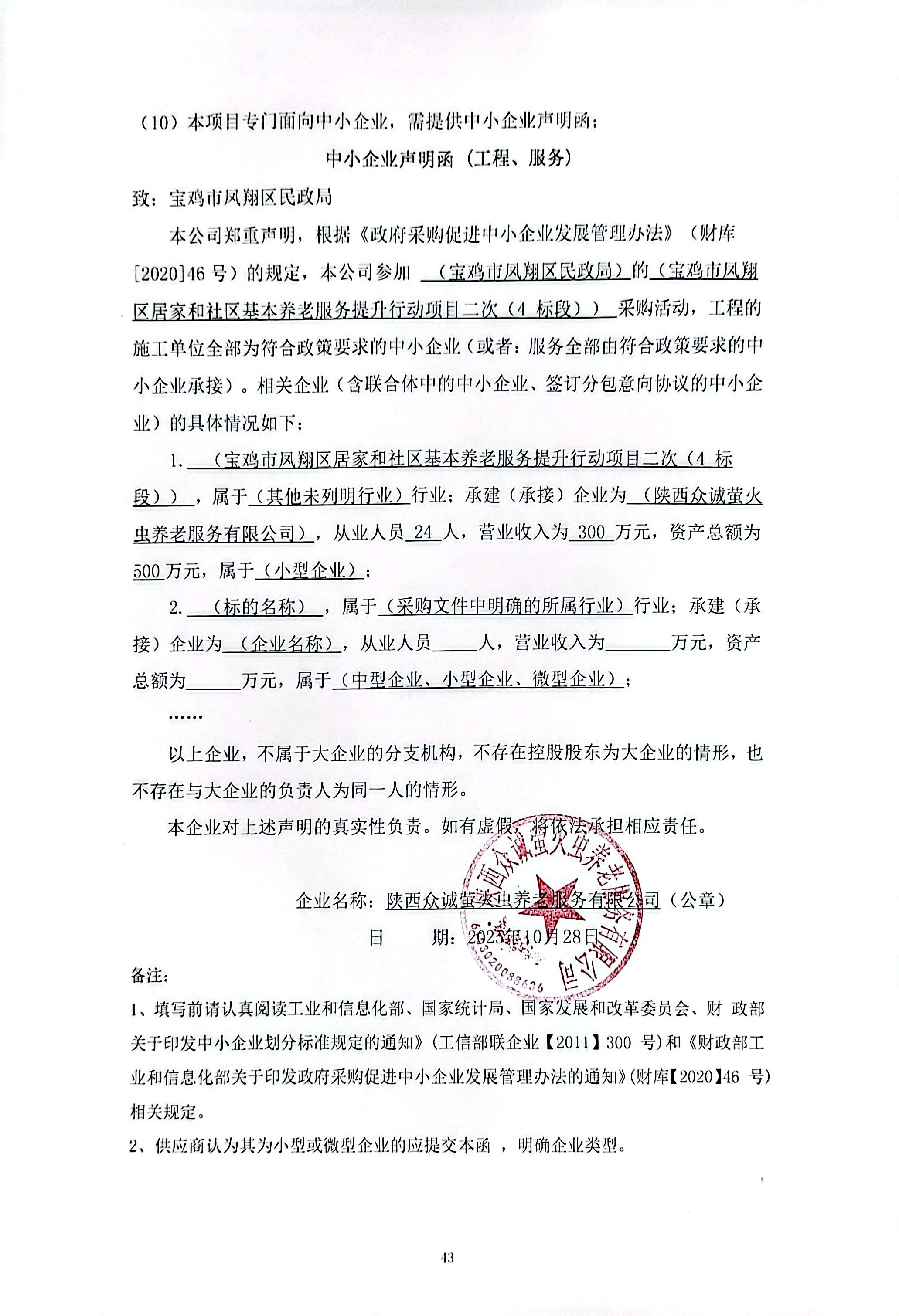 宝鸡市凤翔区民政局宝鸡市凤翔区居家和社区基本养老服务提升行动项目(二次)中标(成交)结果公告