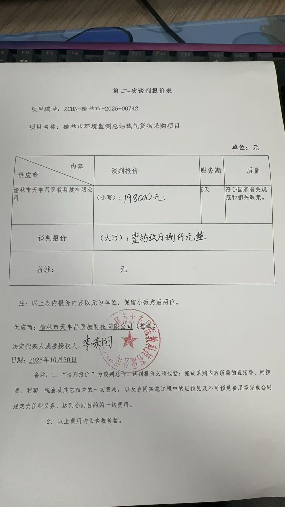 一、项目编号:ZCBN-榆林市-2025-00742二、项目名称:载气货物采购项目三、采购结果采购包1: