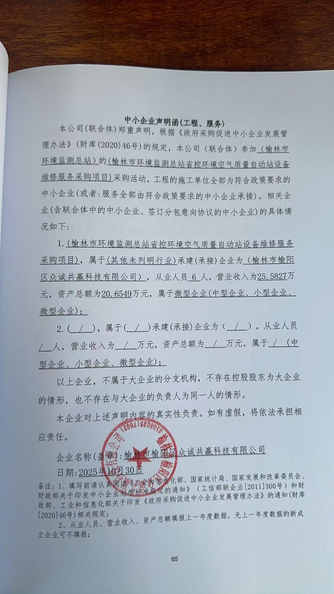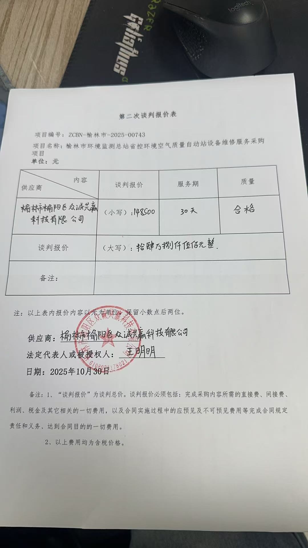 榆林市环境监测总站省控环境空气质量自动站设备维修服务采购项目成交结果公告