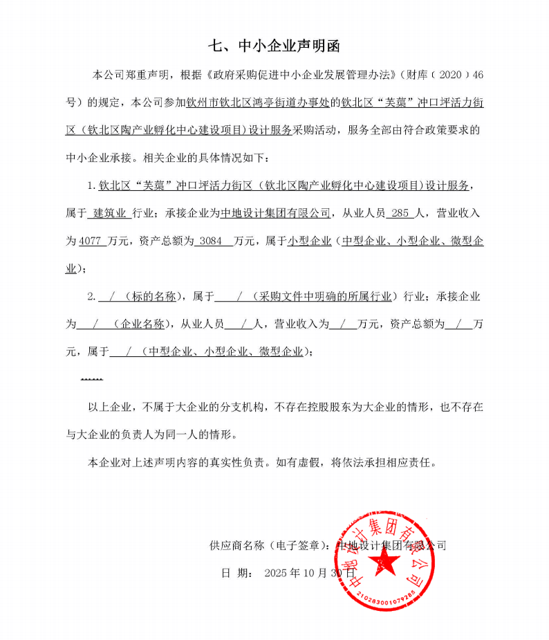 一、项目编号:QZZC2025-C3-030114-GXRD 二、项目名称:钦北区“芙蕖”冲口坪活力街区(钦北区陶产业孵化中心建设项目)设计服务 三、中标(成交)信息 1.中标结果: | 序号 | 中标(成交)金额(元) | 中标供应商名称 | 中标供应商地址 | | 1 | 报价:726800(元) | 中地设计集团有限公司 | 辽宁省大连庄河市大连新兴产业经济区办公楼202室 |