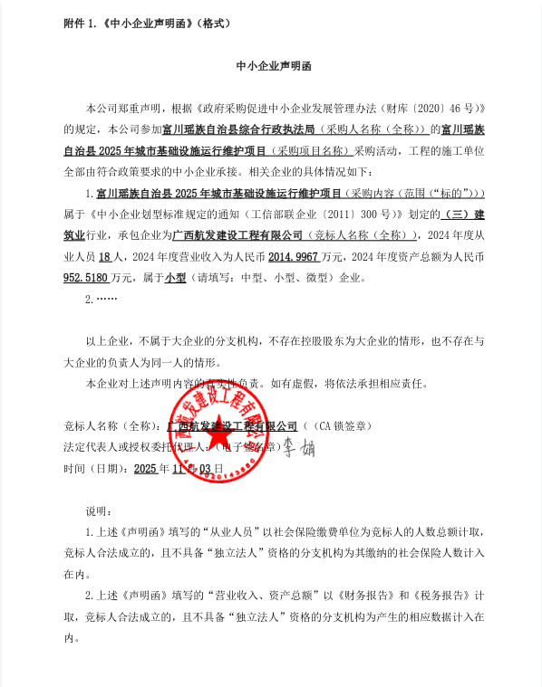 广西建宇工程招标有限公司关于富川瑶族自治县2025年城市基础设施运行维护项目(HZZC2025-C2-230151-GXJY) 的成交结果公告