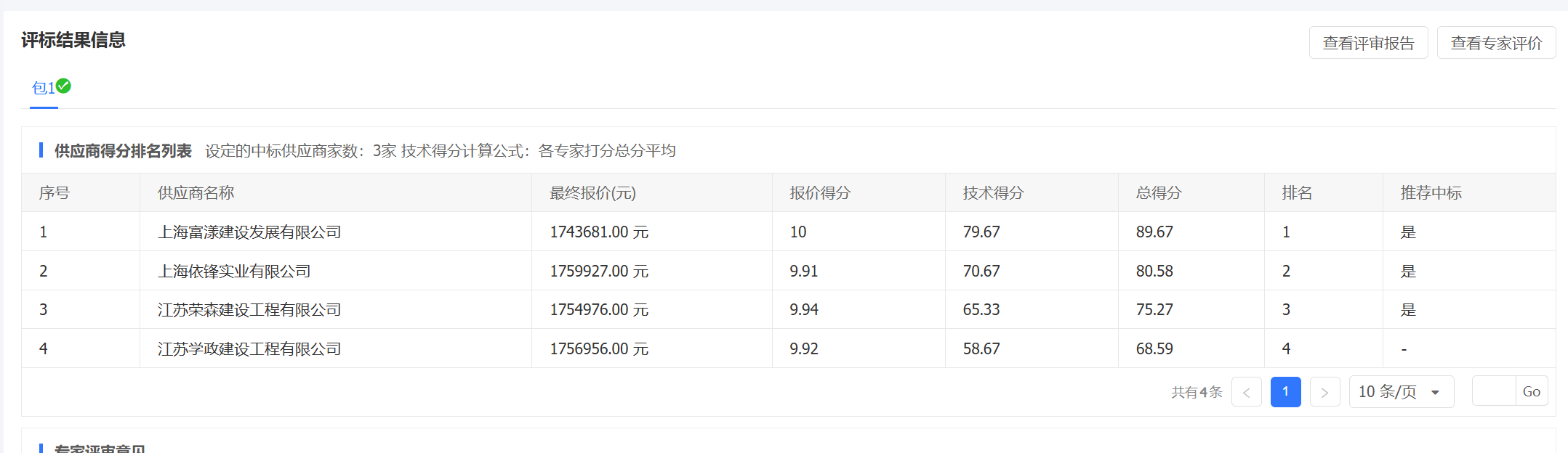 五、评审专家(单一来源采购人员)名单: 潘立,沈泓,杨帆 六、代理服务收费标准及金额: 1.代理服务收费标准:沪建计联(2005)834号 2.代理服务收费金额(元):11816.0 七、公告期限 自本公告发布之日起1个工作日。 八、其他补充事宜 推荐理由: 本项目共有4家单位参与竞争性磋商,该4家单位的响应文件均能满足磋商文件的要求。