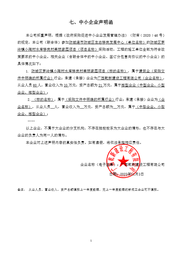 广西成文招标代理有限公司关于防城区茅岭镇小陶村水库移民村美丽家园项目成交公告