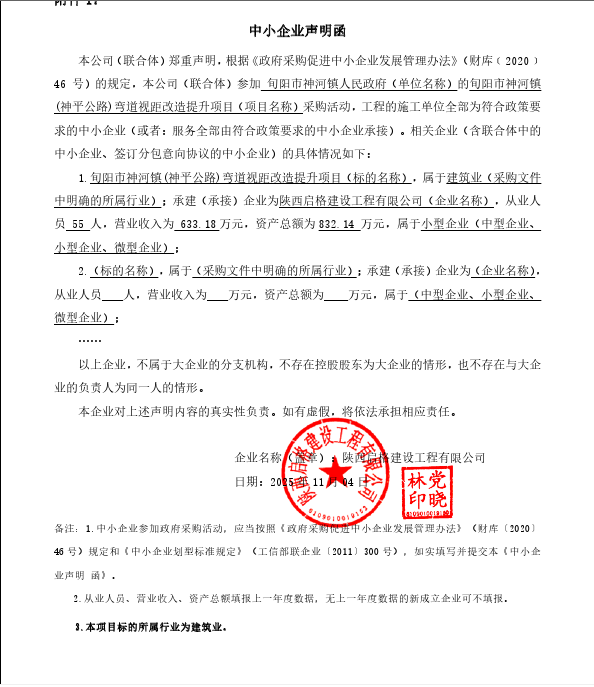 旬阳市神河镇(神平公路)弯道视距改造提升项目中标(成交)结果公告