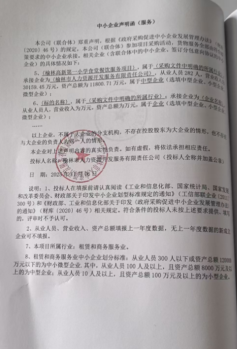 七、公告期限自本公告发布之日起1个工作日。 八、其他补充事宜第二成交候选人: 榆林万嘉诺人力资源有限公司 最终单价报价合计(大写): 贰拾陆万捌仟贰佰元整 第三成交候选人: 陕西榆林亿成人力资源开发股份有限公司 最终单价报价合计(大写): 贰拾陆万玖仟捌佰伍拾元整 九、凡对本次公告内容提出询问,请按以下方式联系。1.采购人信息名称:榆林高新第一小学 地址:陕西省榆林市高新区兴达路桃园小区 联系方式:18591238061 2.采购代理机构信息名称:榆林铭和信招标服务有限公司 地址:榆林市榆阳区榆溪雅园南门二楼商铺 联系方式:19929632352 3.项目联系方式项目联系人:秦伟 电话:19929632352 榆林铭和信招标服务有限公司 2025年11月07日 相关公告 | ||||||||||||||||||||||||||||||||||||||||||||||||||||||||||||||||||||||||||||||||||||||||||||||||||||||||||||||||||||||||