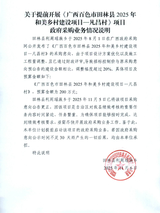 广西御和投资有限公司关于广西百色市田林县2025年和美乡村建设项目—凡昌村的竞争性磋商公告(远程异地评标)