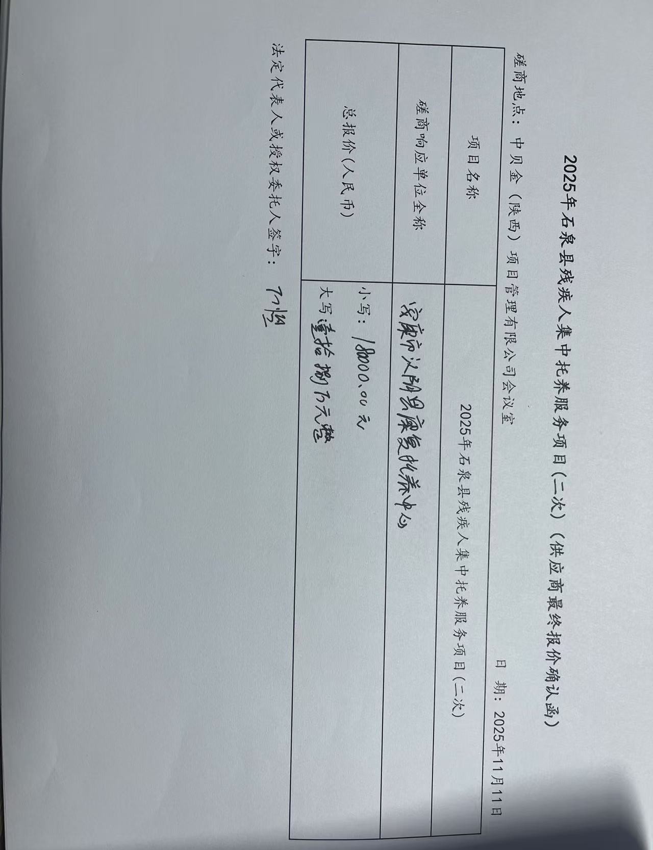 2025年石泉县残疾人集中托养服务项目(二次)中标(成交)结果公告