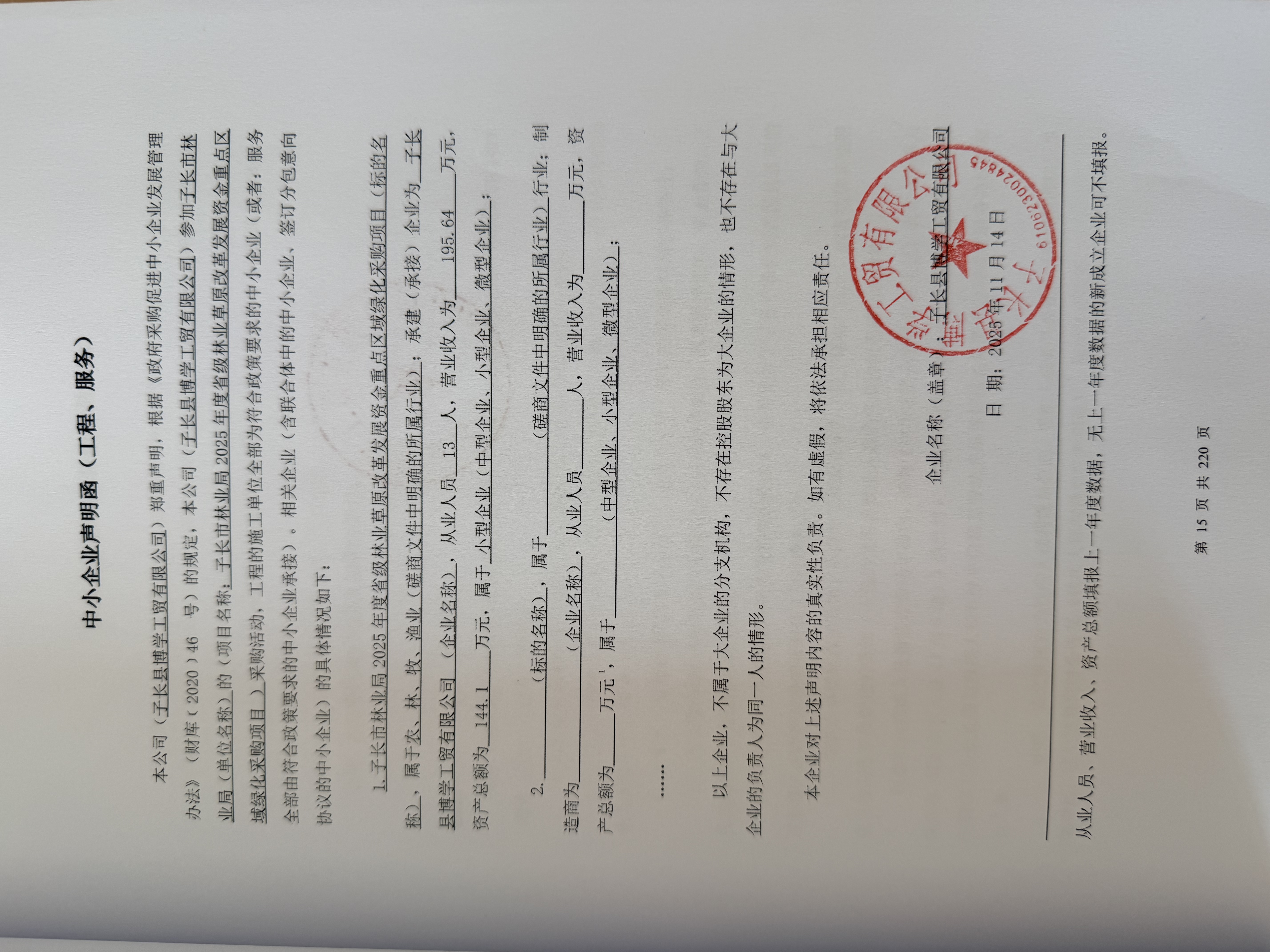 一、项目编号:SXYJH-2025-32 二、项目名称:2025年度省级林业草原改革发展资金重点区域绿化采购项目 三、采购结果 采购包1: | 供应商名称 | 供应商地址 | 中标(成交)金额 | 评审总得分 | | 子长县博学工贸有限公司 | 延安市向阳小区 | 1,499,500.00元 | 84.50 | 四、主要标的信息 合同包1(子长市林业局2025年度省级林业草原改革发展资金重点区域绿化采购项目): 服务类(子长县博学工贸有限公司) | 品目号 | 品目名称 | 采购标的 | 服务范围 | 服务要求 | 服务时间 | 服务标准 | 金额(元) | | 1 | 造林服务 | 2025年度省级林业草原改革发展资金重点区域绿化 | 本项目包含的所有服务内容 | 达到现行合格标准,符合国家、行业、地方规定以及达到采购人验收要求 | 服务期为1年,即2025年12月-2026年12月 | 达到现行合格标准,符合国家、行业、地方规定以及达到采购人验收要求 | 1,499,500.00 | 五、评审专家(单一来源采购人员)名单: 六、代理服务收费标准及金额: | 代理服务收费标准及金额 | 参考国家计委颁发的《招标代理服务收费管理暂行办法》(计价格[2002]1980号)和国家发改委办公厅颁发的《关于招标代理服务收费有关问题的通知》(发改办价格【2003】857号)规定的收费标准以及发改价格『2011』534号文中规定的标准计取 | | 合同包号 | 合同包名称 | 代理服务费金额(万元) | 收取对象 | | 1 | 子长市林业局2025年度省级林业草原改革发展资金重点区域绿化采购项目 | 1.8996 | 中标(成交)供应商 | 七、公告期限 自本公告发布之日起1个工作日。 八、其他补充事宜 九、凡对本次公告内容提出询问,请按以下方式联系。 1.采购人信息 名称:子长市林业局 地址:陕西省子长县刘家沟林业综合大楼 联系方式:15991101116 2.采购代理机构信息 名称:陕西永锦辉工程项目管理有限公司 地址:延安市宝塔区新区上城六号2号楼一单元401室 联系方式:19991122227 3.项目联系方式 项目联系人:孙维舟 电话:19991122227 陕西永锦辉工程项目管理有限公司 2025年11月14日 |