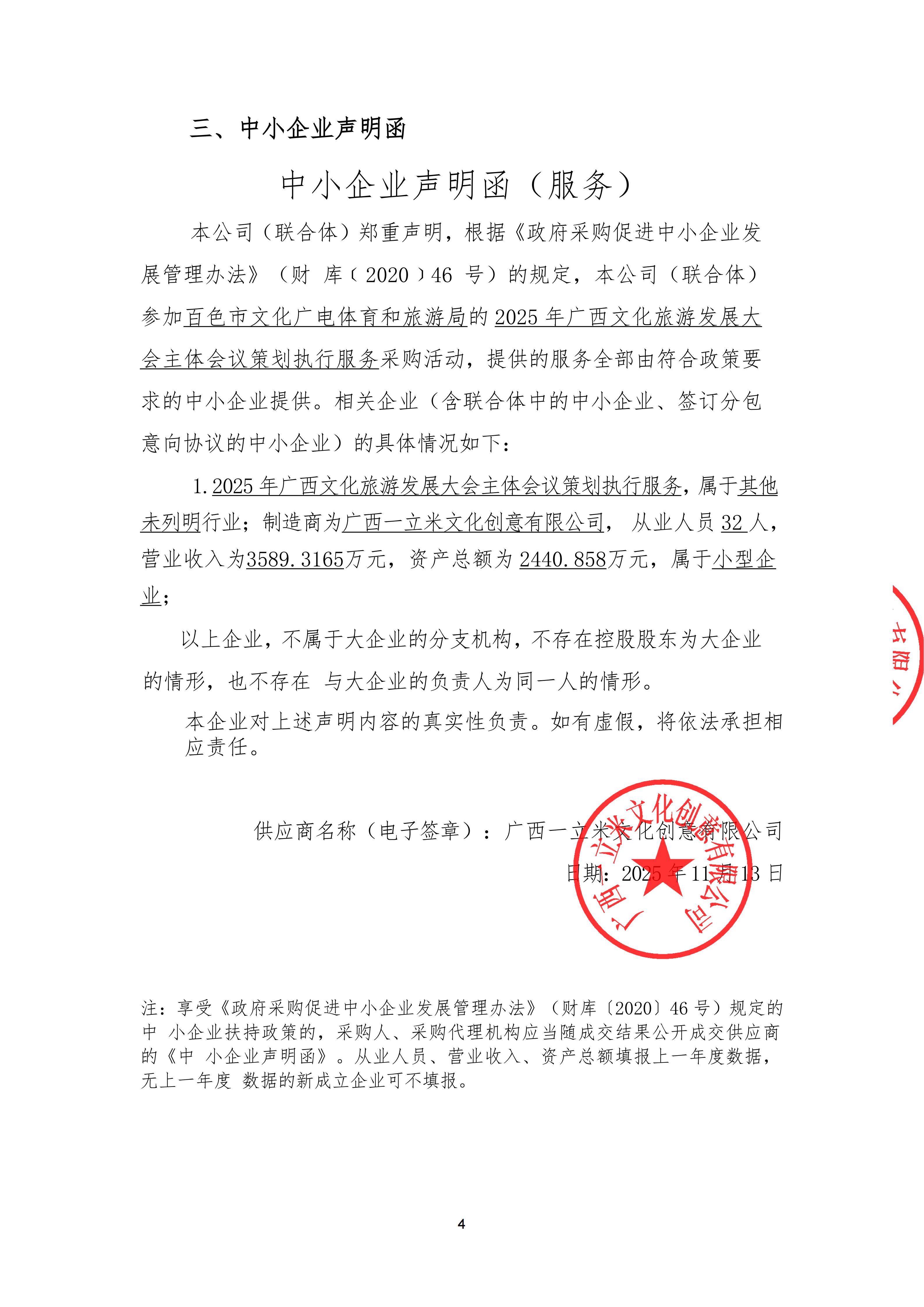 2.废标结果: 四、主要标的信息 服务类主要标的信息: | 序号 | 标项名称 | 标的名称 | 服务范围 | 服务要求 | 服务时间 | 服务标准 | | 1 | 2025年广西文化旅游发展大会主体会议策划执行服务 | 2025年广西文化旅游发展大会主体会议策划执行服务 | 按采购文件《采购需求》执行 | 按采购文件《采购需求》执行 | 按采购文件《采购需求》执行 | 按采购文件《采购需求》执行 |