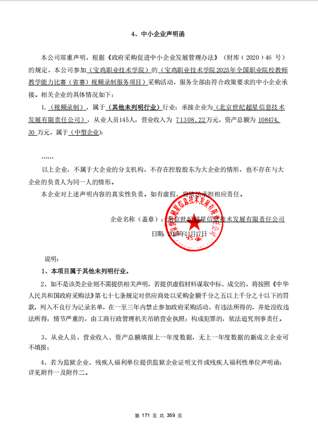 四、主要标的信息合同包1(宝鸡职业技术学院2025年全国职业院校教师教学能力比赛(省赛)视频录制服务项目): 服务类(北京世纪超星信息技术发展有限责任公司)