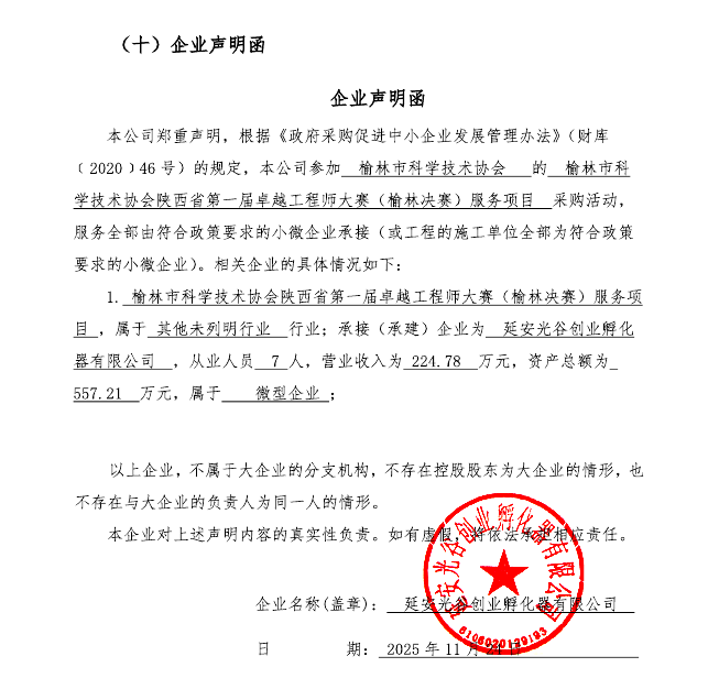 一、项目编号:QZMS2025-ZFCG030 二、项目名称:陕西省第一届卓越工程师大赛(榆林决赛)承接服务项目 三、采购结果 采购包1: | 供应商名称 | 供应商地址 | 中标(成交)金额 | 评审价格 | | 延安光谷创业孵化器有限公司 | 陕西省延安市宝塔区新区新天地步行街G区 | 797,000.00元 | 797,000.00元 | 四、主要标的信息 合同包1(榆林市科学技术协会陕西省第一届卓越工程师大赛(榆林决赛)服务项目): 服务类(延安光谷创业孵化器有限公司) | 品目号 | 品目名称 | 采购标的 | 服务范围 | 服务要求 | 服务时间 | 服务标准 | 金额(元) | | 1 | 其他科技服务 | 全面负责本次大赛的场租、广告制作、专业人员对接、交通、食宿、摄影摄像、直播、宣传、赛事对接等的服务。 | 榆林市科学技术协会陕西省第一届卓越工程师大赛(榆林决赛)服务项目 | 符合采购文件要求 | 自合同签订之日起至决赛后15个工作日止,决赛举办时间以大赛总体方案及采购人最终通知为准,具体实施需配合时间调整。 | 符合采购文件要求 | 797,000.00 | 五、评审专家(单一来源采购人员)名单: 六、代理服务收费标准及金额: | 代理服务收费标准及金额 | 《国家计委关于印发<招标代理服务收费管理暂行办法>的通知》(计价格[2002]1980号)和国家发展改革委员会办公厅颁发的《关于招标代理服务收费有关问题的通知》(发改办价格[2011]534号) | | 合同包号 | 合同包名称 | 代理服务费金额(万元) | 收取对象 | | 1 | 榆林市科学技术协会陕西省第一届卓越工程师大赛(榆林决赛)服务项目 | 1.1955 | 中标(成交)供应商 | 七、公告期限 自本公告发布之日起1个工作日。 八、其他补充事宜 九、凡对本次公告内容提出询问,请按以下方式联系。 1.采购人信息 名称:榆林市科学技术协会 地址:榆阳区榆溪大道13号政协楼601室 联系方式:0912-3895250 2.采购代理机构信息 名称:陕西秦洲明盛工程咨询有限公司 地址:陕西省榆林市高新技术产业园区榆溪大道阳光商务大厦十楼 联系方式:15389121603 3.项目联系方式 项目联系人:拓建伟 电话:15389121603 陕西秦洲明盛工程咨询有限公司 2025年11月25日 |