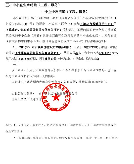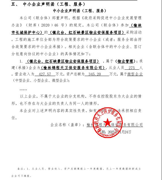 榆林市长城保护中心镇北台、红石峡景区物业安保服务项目中标(成交)结果公告