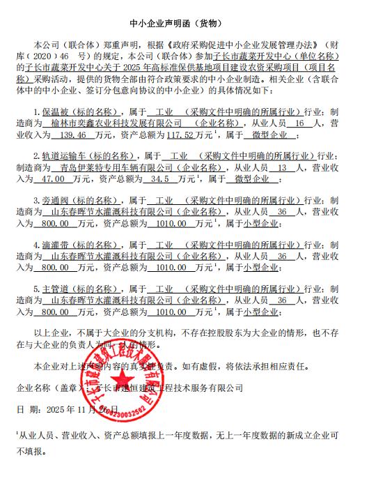子长市蔬菜开发中心关于2025年高标准保供基地项目建设农资采购项目中标(成交)结果公告