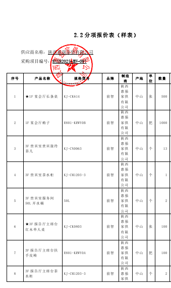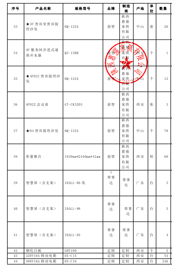 一、项目编号:SXXS2025-HW-097 二、项目名称:榆林会展中心货物类 三、采购结果 采购包1: | 供应商名称 | 供应商地址 | 中标(成交)金额 | 评审价格 | | 陕西惠强家俱有限公司 | 西安市未央区北三环大明宫家具商城三楼 | 1,491,651.00元 | 1,491,651.00元 | 四、主要标的信息 合同包1(榆林市外事和对外经济协作局榆林会展中心货物类采购项目): 货物类(陕西惠强家俱有限公司) | 品目号 | 品目名称 | 采购标的 | 品牌 | 规格型号 | 数量(单位) | 单价(元) | 总价(元) | | 1 | 其他办公设备 | 榆林会展中心货物类采购 | 前智等 | KJ-CK614等 | 1.00(批) | 1,491,651.00 | 1,491,651.00 | 五、评审专家(单一来源采购人员)名单: 六、代理服务收费标准及金额: | 代理服务收费标准及金额 | 招标代理服务费: (1)招标代理服务费的收取参见国家计委颁布的《招标代理服务收费管理暂行办法》(计价格[2002]1980号)和(发改办价格[2011]534号)中收费标准收取,按照成交金额差额定率累进法计算。 (2)成交供应商在领取成交通知书前,须向采购代理机构一次性支付招标代理服务费。 | | 合同包号 | 合同包名称 | 代理服务费金额(万元) | 收取对象 | | 1 | 榆林市外事和对外经济协作局榆林会展中心货物类采购项目 | 2.04 | 中标(成交)供应商 | 七、公告期限 自本公告发布之日起1个工作日。 八、其他补充事宜 第二成交候选人:西安友尚家具有限公司 最终报价:壹佰肆拾玖万捌仟叁佰肆拾捌元整 第三成交候选人:西安金博莱家具有限公司 最终报价:壹佰伍拾万零伍佰元整 九、凡对本次公告内容提出询问,请按以下方式联系。 1.采购人信息 名称:榆林市外事和对外经济协作局 地址:陕西省榆林市高新区安居路口岸联检大楼5楼515室 联系方式:18165021665 2.采购代理机构信息 名称:陕西新胜项目管理有限公司 地址:陕西省西安市长安区陕西省西安市长安区子午大道荣欣一号 联系方式:029-81599669 3.项目联系方式 项目联系人:陈思璇 电话:15619895155 陕西新胜项目管理有限公司 2025年12月01日 |