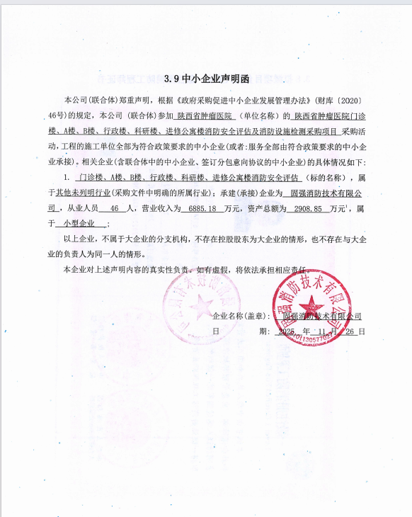 陕西省肿瘤医院门诊楼、A楼、B楼、行政楼、科研楼、进修公寓楼消防安全评估及消防设施检测采购项目成交结果公告