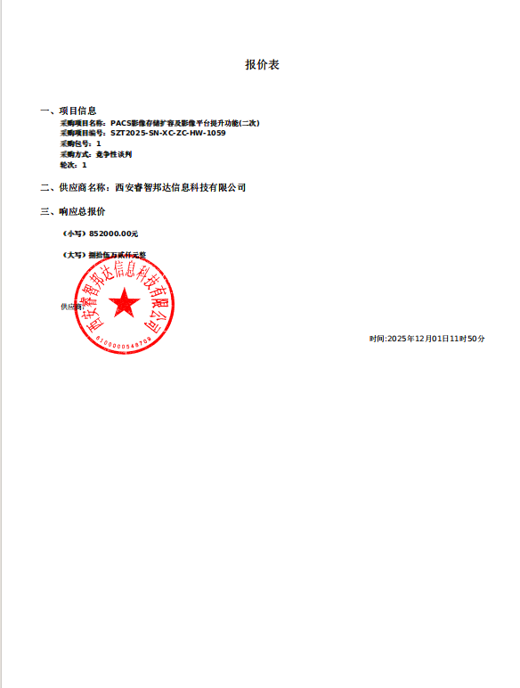 西安市红会医院PACS影像存储扩容及影像平台提升功能(二次)中标(成交)结果公告