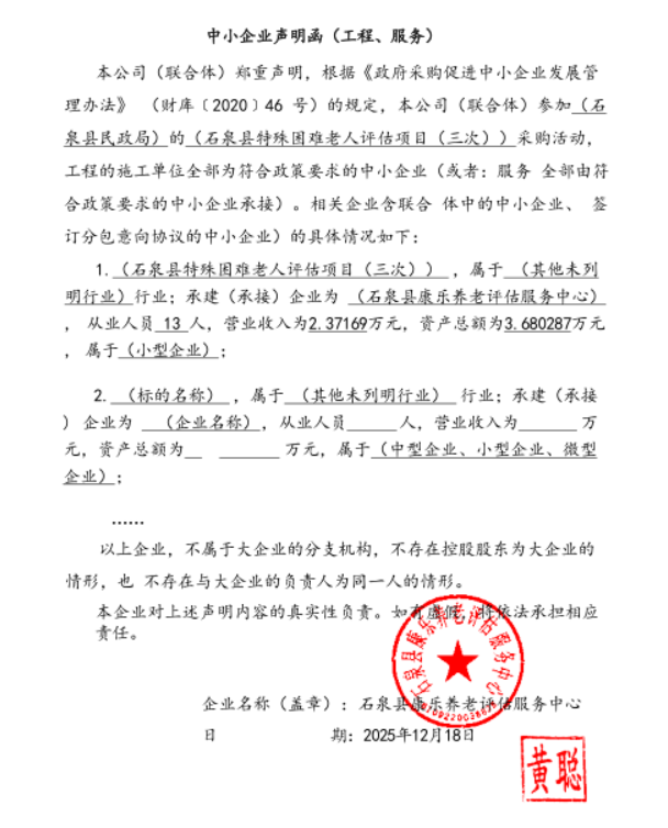 石泉县民政局石泉县特殊困难老人评估项目(三次)中标(成交)结果公告