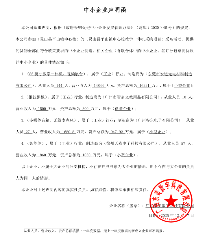 钦州市政府采购中心关于灵山县平山镇中心校教学一体机采购项目(QZZC2025-J1-210305-QZSZ)成交公告