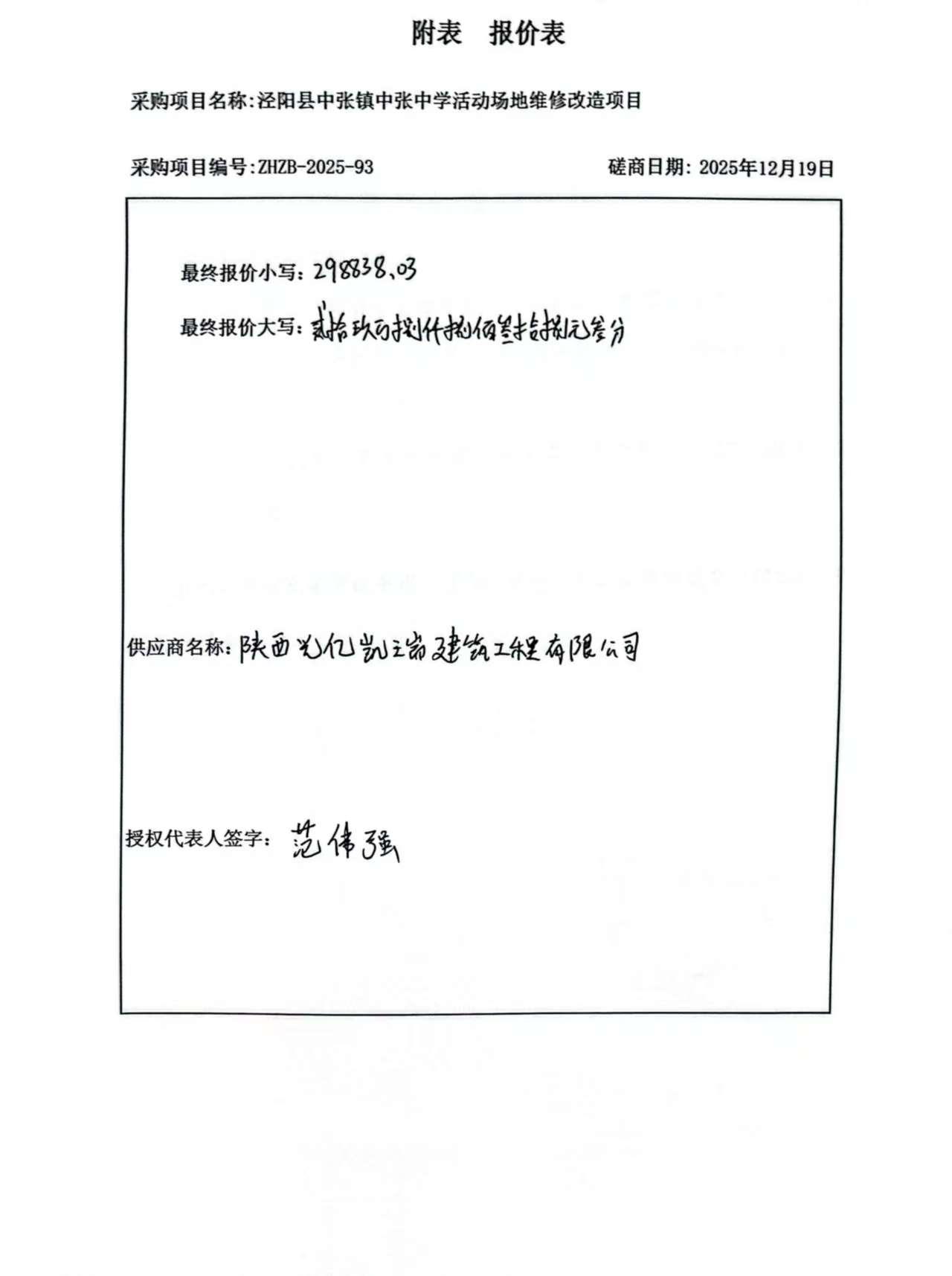 泾阳县中张镇中张中学活动场地维修改造项目中标(成交)结果公告