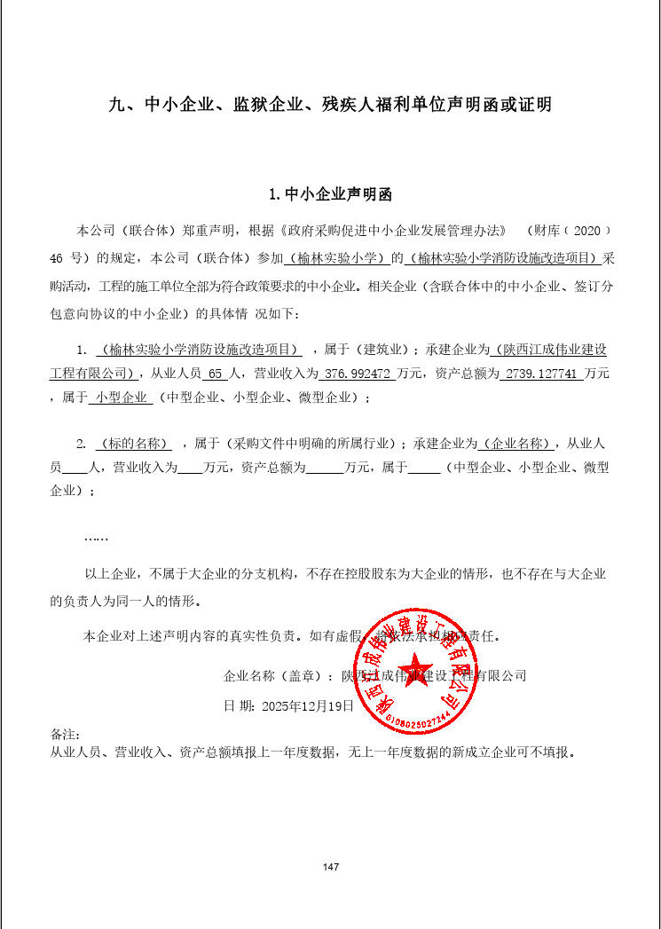 四、主要标的信息合同包1(榆林实验小学消防设施改造项目): 工程类(陕西江成伟业建设工程有限公司)