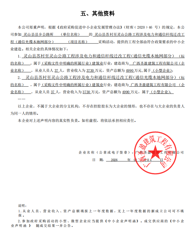 广西辉耀工程管理有限公司关于灵山县苏村至灵山公路工程涉及电力和通信杆线迁改工程(通信光缆本地网部分)的成交公告