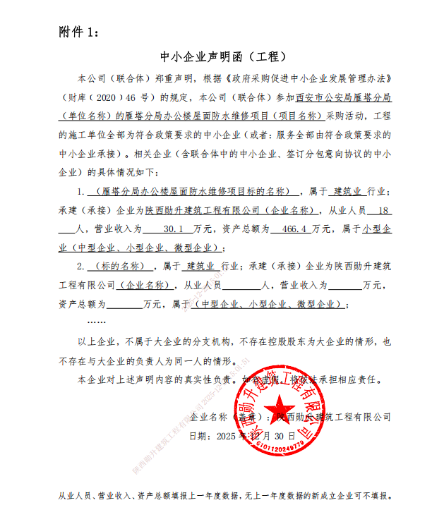 西安市公安局雁塔分局办公楼屋面防水维修项目中标(成交)结果公告