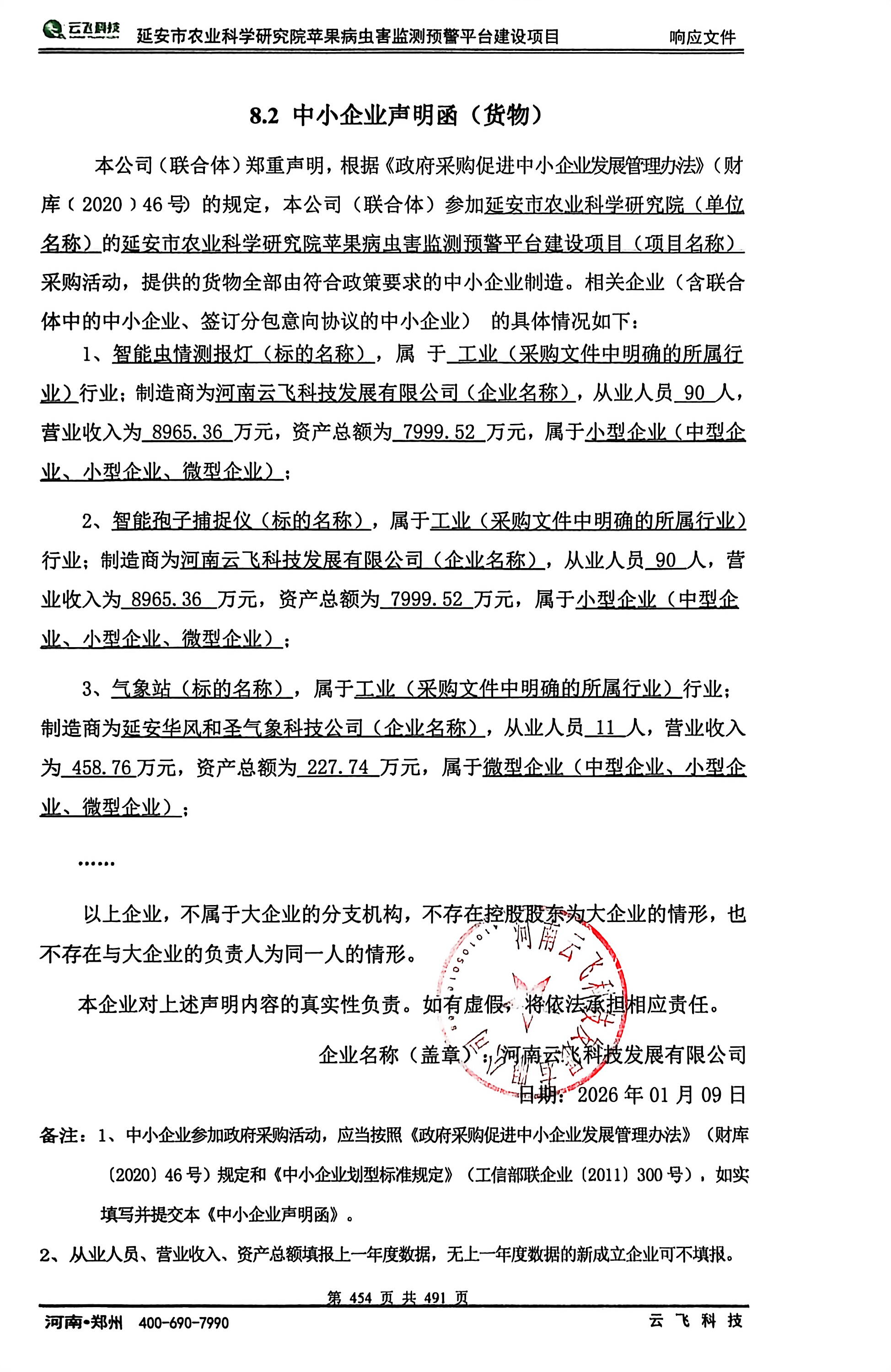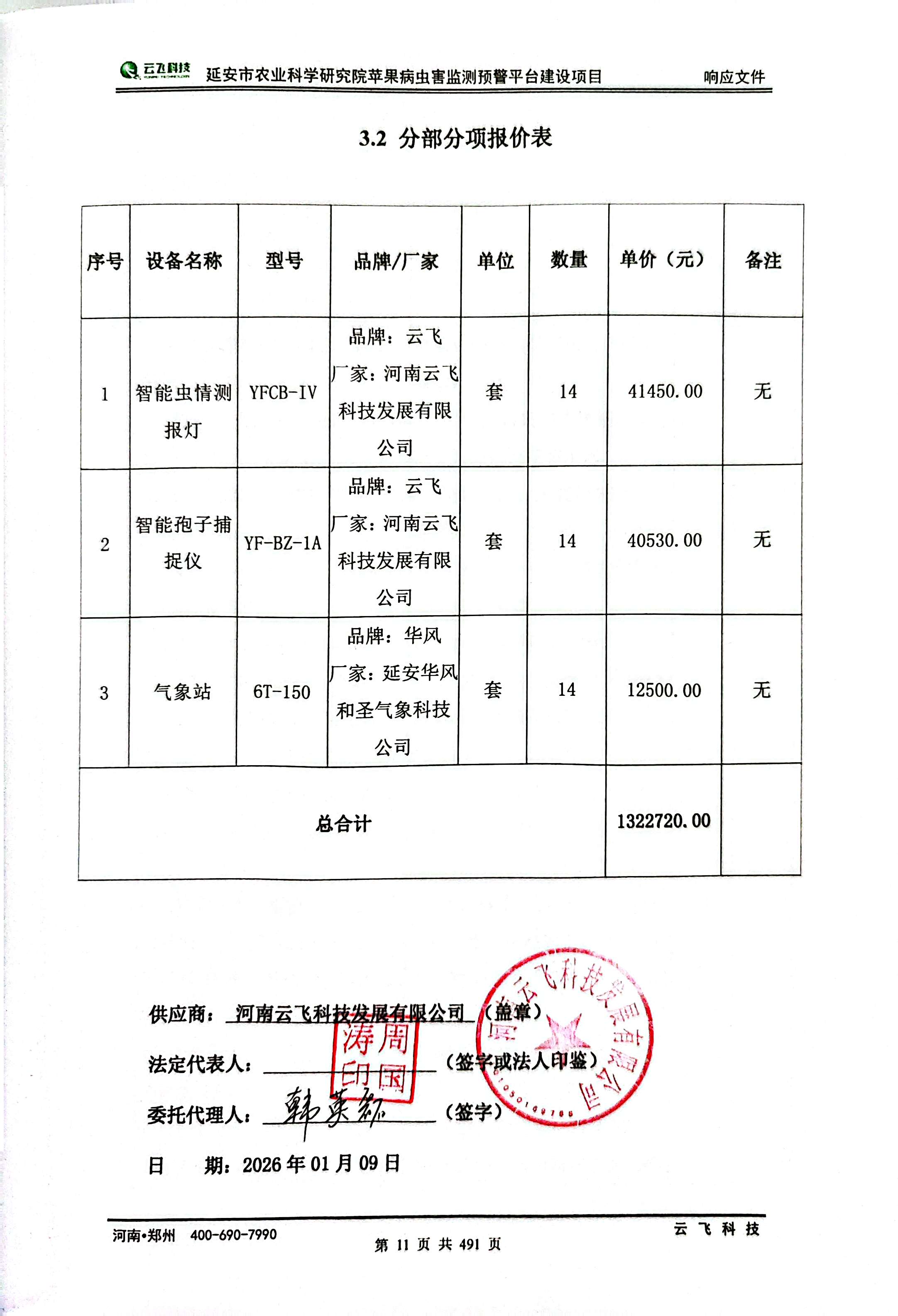 一、项目编号:SXCCXM-2025-031 二、项目名称:苹果病虫害监测预警平台建设项目 三、采购结果 采购包1: | 供应商名称 | 供应商地址 | 中标(成交)金额 | 评审价格 | | 河南云飞科技发展有限公司 | 郑州金水区北三环南、文化路东瀚海北金商业中心6层6020号 | 1,288,000.00元 | 1,288,000.00元 | 四、主要标的信息 合同包1(延安市农业科学研究院苹果病虫害监测预警平台建设项目): 货物类(河南云飞科技发展有限公司) | 品目号 | 品目名称 | 采购标的 | 品牌 | 规格型号 | 数量(单位) | 单价(元) | 总价(元) | | 1 | 环境监测仪器及综合分析装置 | 苹果病虫害监测预警平台建设 | 云飞 | YFCB-IV | 1.00(批) | 1,288,000.00 | 1,288,000.00 | 五、评审专家(单一来源采购人员)名单: 六、代理服务收费标准及金额: | 代理服务收费标准及金额 | 采购代理机构参照国家计委关于印发《招标代理服务收费管理暂行办法》计价格[2002]1980号文和《国家发展改革委关于降低部分建设项目收费标准规范收费行为等有关问题的通知》发改价格[2011]534号规定标准收取代理服务费。 | | 合同包号 | 合同包名称 | 代理服务费金额(万元) | 收取对象 | | 1 | 延安市农业科学研究院苹果病虫害监测预警平台建设项目 | 1.8168 | 采购人 | 七、公告期限 自本公告发布之日起1个工作日。 八、其他补充事宜 九、凡对本次公告内容提出询问,请按以下方式联系。 1.采购人信息 名称:延安市农业科学研究院 地址:延安市宝塔区马家湾 联系方式:13772876781 2.采购代理机构信息 名称:陕西昌晨项目管理有限公司 地址:延安市宝塔区百米大道嘉岭大厦A座9楼 联系方式:0911-8100087 3.项目联系方式 项目联系人:徐海霞 电话:15877670386 陕西昌晨项目管理有限公司 2026年01月13日 |
