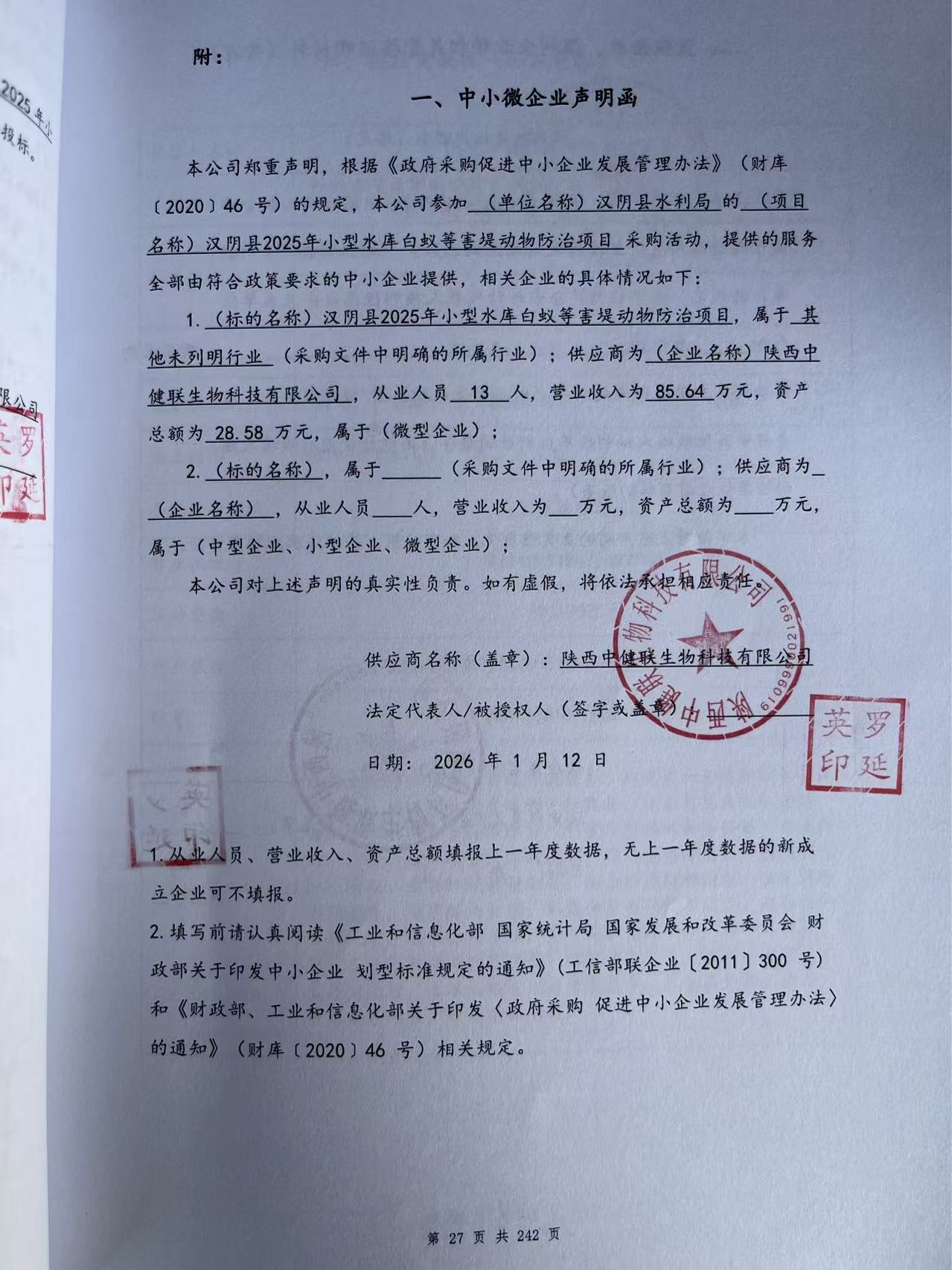 四、主要标的信息合同包1(汉阴县2025年小型水库白蚁等害堤动物防治项目): 服务类(陕西中健联生物科技有限公司)