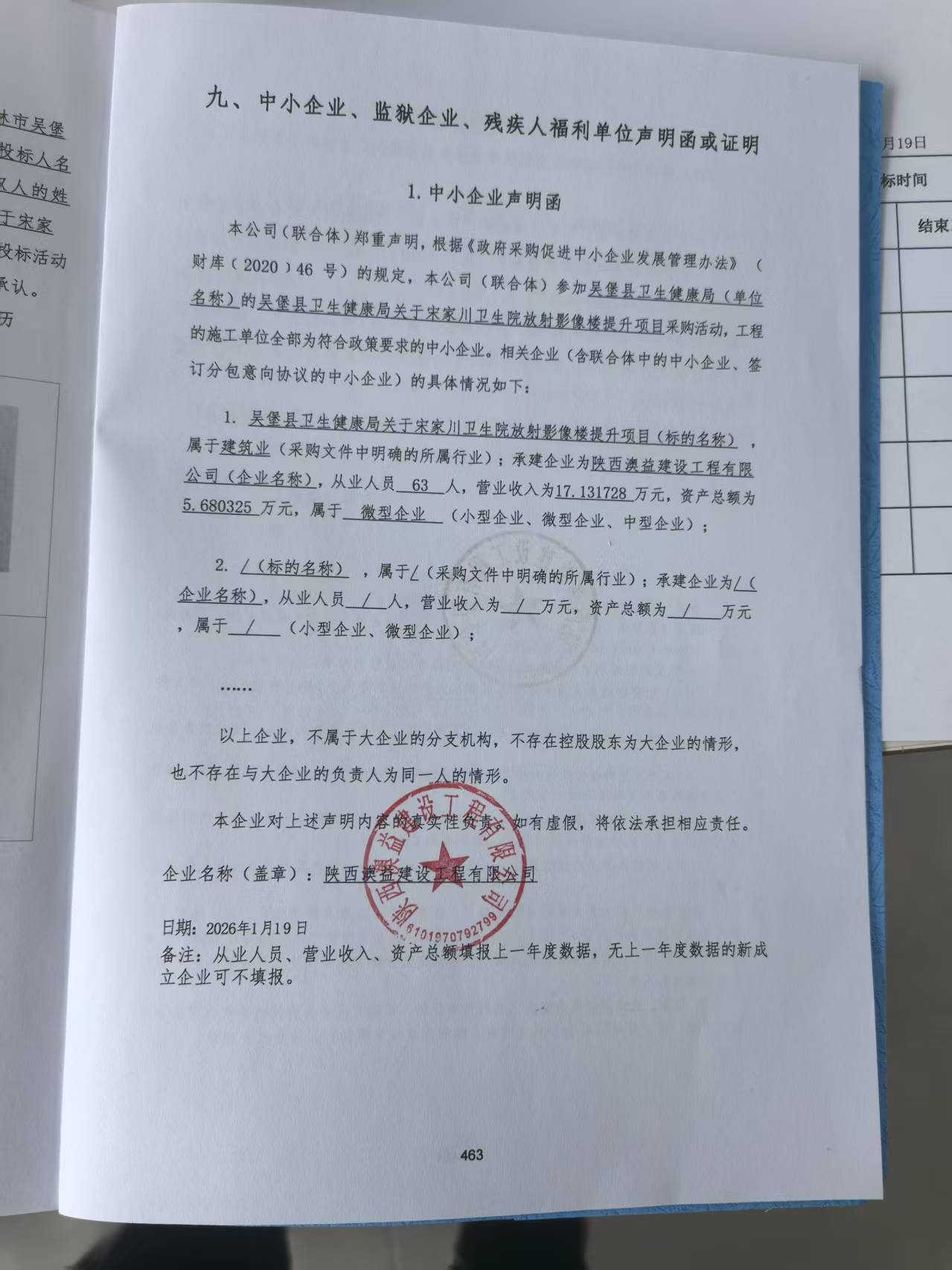 吴堡县卫生健康局关于宋家川卫生院放射影像楼提升项目中标(成交)结果公告