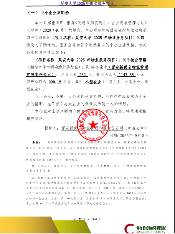 四、主要标的信息合同包1(延安大学2025年新城校区外围物业服务项目): 服务类(西安新保全物业管理有限责任公司)