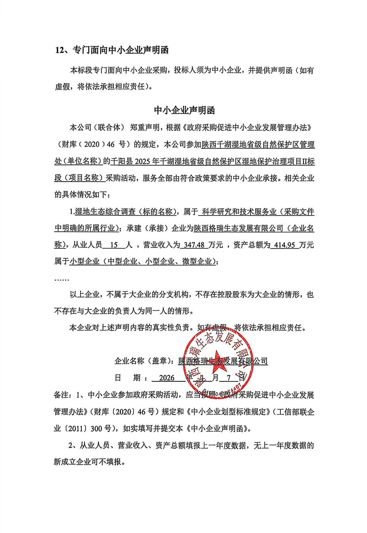陕西千湖湿地省级自然保护区管理处千阳县2025年千湖湿地省级自然保护区湿地保护治理项目中标(成交)结果公告